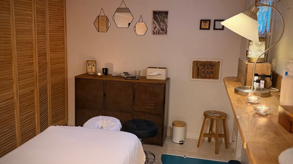J’y propose différents soins : massage relaxant, massage suédois et massage abyanga (ayurvédique).